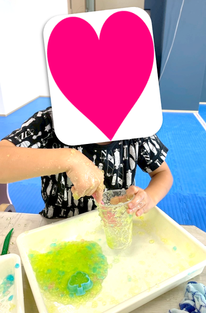 「寒天遊び」では、普段寒天に触れることが無い子ども達が殆どだったので「寒天って何❓」と不思議そうにしていましたが、いざ目の前に寒天が来ると「なにこれ~❕」と大興奮💖