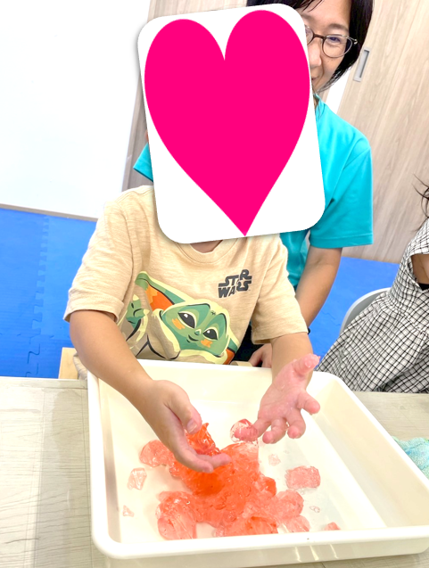 今週のARTは放課後等デイサービスでは「ステムボックス」、児童発達支援では感触遊びで「寒天」を使って遊びました🧱
