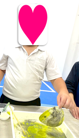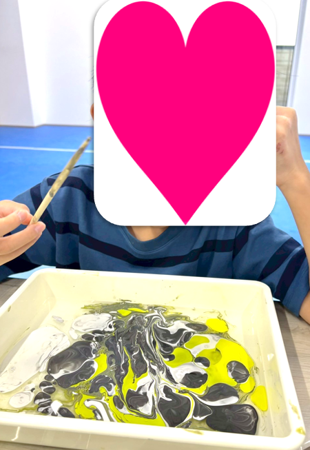 ARTでは「マーブリング」という技法を使ってお月さまを作りました🌕