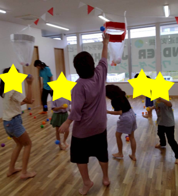 また、玉入れでは箱を狙ってボールを投げるため、目も体もたくさん使って集中力MAXの子どもたち👀