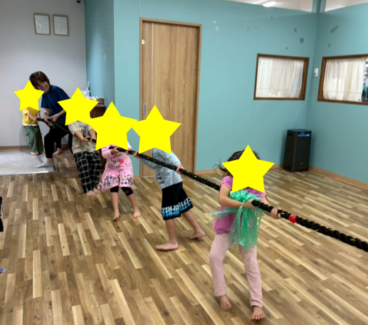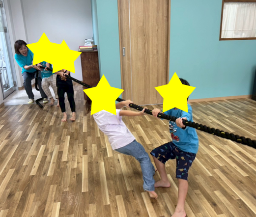まず綱引きでは、引っ張る際のチームメイトとの協力や全身を使った運動を行いました!