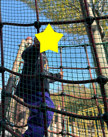 アスレチック遊具にて鬼ごっこをして遊んだり、、