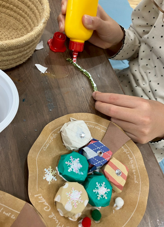 最後にはモールやポンポン、星などの装飾をして完成🙌