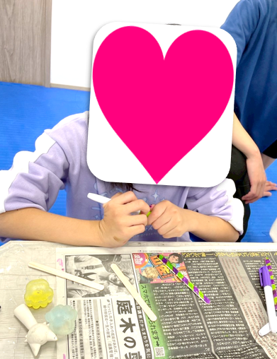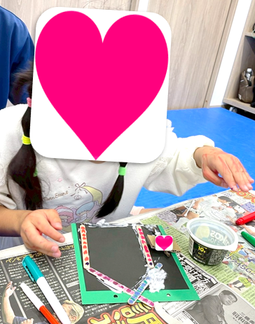 見本と同じようにカラフルにする子や、一本一本違う色にする子もいて、まだ製作途中でしたが、素敵な家になりそうだなぁと感じてました🎵