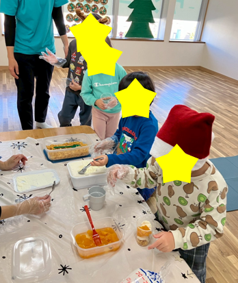 今回はバイキング形式で、子どもたちには好きな材料を好きな分入れることが出来る形で提供しました!