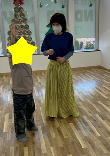 はじめの会の時点で、子どもたちには各スタッフの普通の格好を覚えておいてもらい、間違い探しが始まった後に登場するスタッフの格好と比較して、どこが変わったのか当ててもらうクイズを実施しました◎