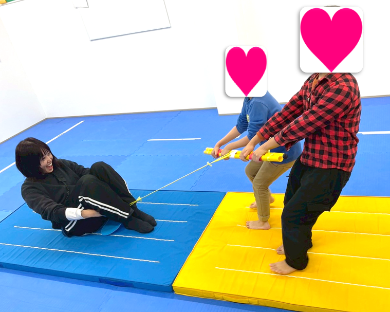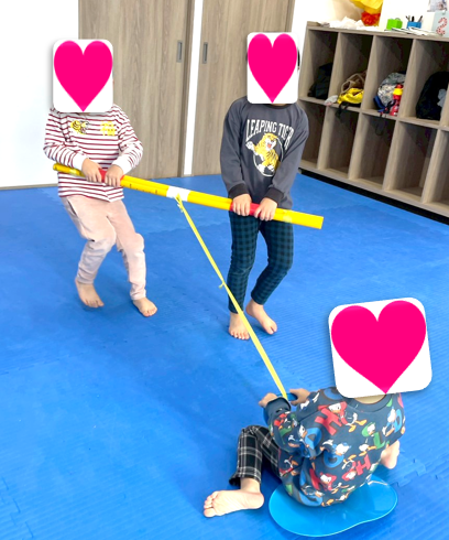 今週のGYMは「ソリ」を使って、子ども達が引っ張り、子ども達が乗る、ということを順番に繰り返して遊びました🛷