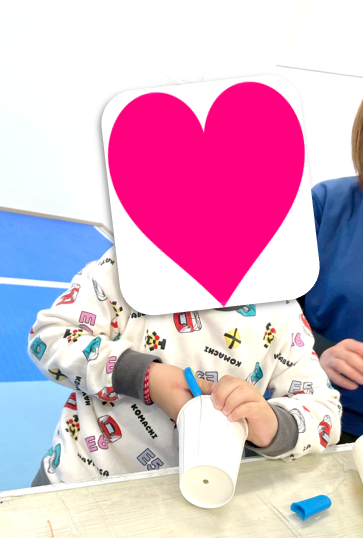放課後等デイサービスでは、少しレベルを上げて、紙コップをハサミで切る所からやりました✂