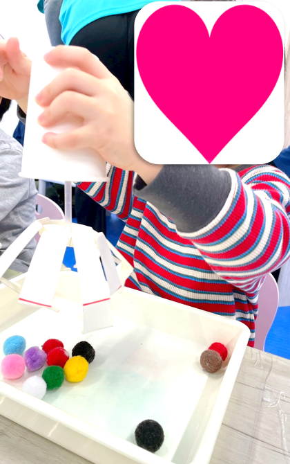 完成したアームで、ポンポンを掴んで遊んだり、中にはセロテープを掴んでいる子もいました😮