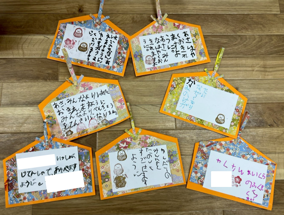 また、放課後等デイサービスの子どもたちはお願い事を実際に書く本格的な絵馬を作りました!