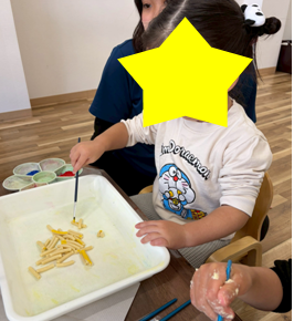 その後、児童発達支援の子どもたちと感触遊びを実施✋