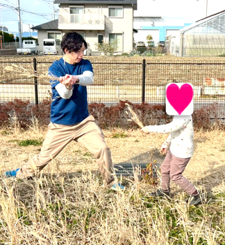 また、猫じゃらしを剣に見立てて、戦いごっこをしたり、追いかけっこをしつつ、ベンチの裏に隠れてみたり、ボールを使って思いっきり投げたりして、お部屋ではできない大きく身体を使った遊びを沢山しました😁