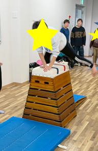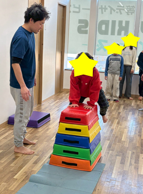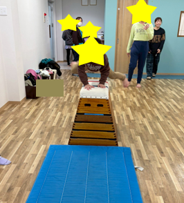 最初は4段でお尻があと一歩…という子も、何度も何度も挑戦を重ね、ついに6段を跳びきる姿も見られました。