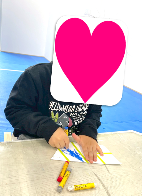 まずはこたつのデザインから作り始めたのですが、児童発達支援の子達はマスキングテープが貼ってあるこたつを、クレヨンで色を塗り、最後にマスキングテープを剥がして柄を作りました😉