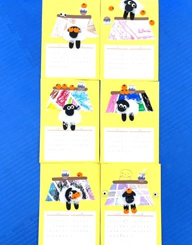来年は羊年なので羊をモチーフとして、冬らしいアイテムも散りばめたカレンダーとなっております🐑