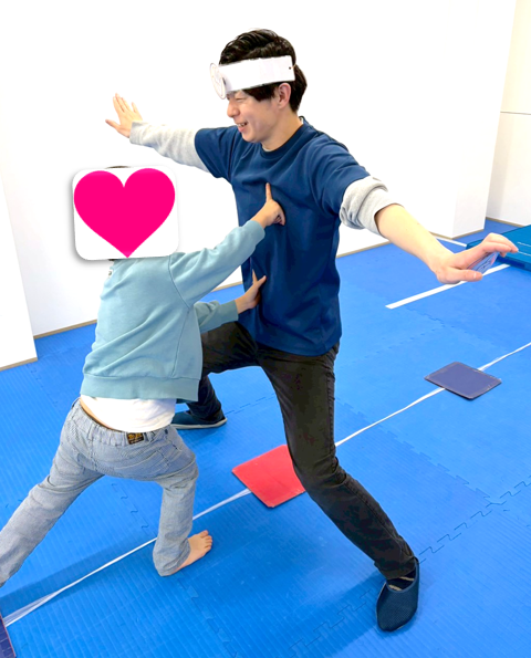 放課後等デイサービスでは、マットとマスを用意して、スタート地点からゴールを目指す双六みたいな感じになっていて、まずはスタート地点でスタッフとじゃんけんして、勝った子と引き分けの子は一マス進む、負けた子はその場に留まる、というルールで遊んでみました✊