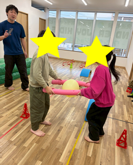 いくつものことに意識を向けて進むこの運動は、集中力や協力、バランス感覚なども必要です。