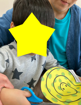 児童発達支援の子どもたちにとっては、今回はハサミで切る工程が少し多い活動でしたが、落ち着いて取り組み、上手に円を切ることができました。