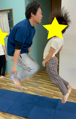 また、スタッフと一緒に跳んでみたり。