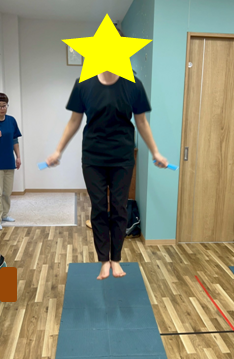 そして、スタッフと一緒に縄を持ち片手ずつ体の横で回してみました。