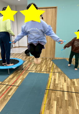 放課後デイサービスの子どもたちは、まず自分のできる跳び方からスタート。