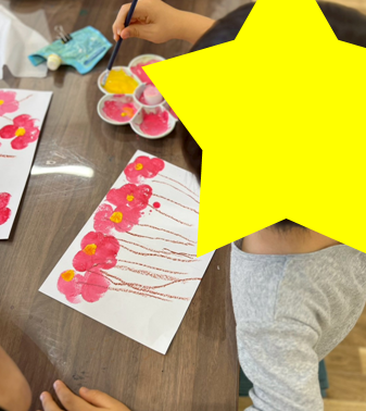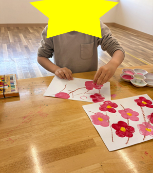 子どもたちのたくさん咲かせた梅の花、集中した表情もとても素敵でした✨