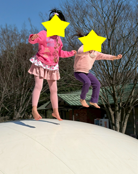 大きいジャンプ、小さいジャンプ、お尻でジャンプしてみたり、寝そべってみたり。