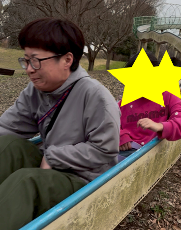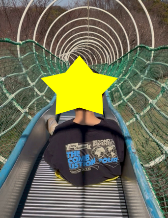 遊び場が見えてくると一目散に駆け出し、ローラー滑り台へ直行💨